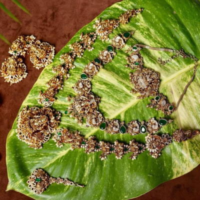 Elegant ruby antique bridal jewellery set for rent, ideal for weddings, receptions, and photoshoots. Add timeless charm to your special day.