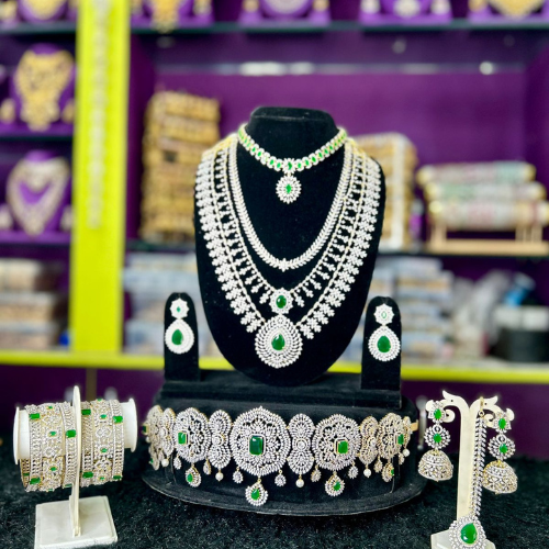 Dazzling, timeless, and endlessly versatile, American diamond jewellery have long been adored for their exquisite allure. With their shimmering stones and captivating designs, these necklaces epitomize elegance and grace for your engagement & Reception evenings.