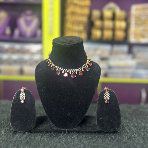 Unique Maroon Victorian minimal jewellery set for rent, perfect for traditional weddings. Elevate your bridal look with regal elegance and charm.